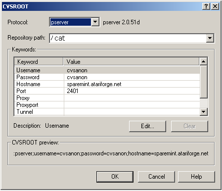 Da es unter TOS wohl kein CVS mit grafischer Oberfläche gibt, und sich meines Wissens nach das für das Atari-cvs nötige MiNT nicht mit MagicPC verträgt ist es sinnvoll hier auch auf CVS-Versionen unter Linux, Windows,.. einzugehen. Da ich selber unter MagicPC entwickle nutze ich WinCvs unter Windows 2000. Weiter unten sind aber auch Links zu Programmen für MAC und Ataris mit MiNT . Wo man welche Parameter eintragen muß dürfte den beschreibungen für WinCvs aber ziemlich ähnlich sein. Falls nicht hoffe ich, daß jemand eine ausführliche Beschreibung beisteuert.